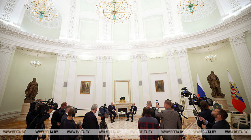 “Quiero agradecerle su atenta actitud hacia todos los ámbitos de nuestra cooperación. Me alegro mucho de verle”, dijo el líder ruso dirigiéndose al Presidente de Belarús.-0-
