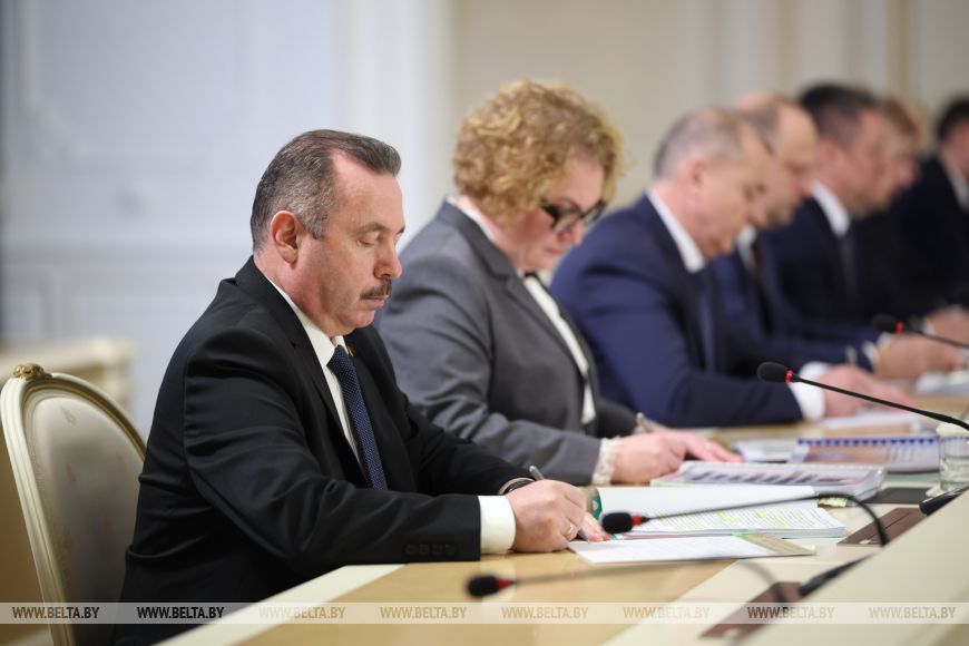 Entre los participantes de la reunión actual se encuentran el primer ministro Aleksandr Turchín, los presidentes de las cámaras del Parlamento Natalia Kochánova e Ígor Sergueyenko, quienes también son líderes del grupo de trabajo para monitorear el desarrollo socioeconómico de la provincia de Vítebsk, el jefe de la Administración Presidencial Dmitri Krutói, el presidente del Comité de Control Estatal Vasili Guerásimov, el fiscal general Dmitri Gorá, el presidente de la junta del Banco Nacional Román Golóvchenko, el gerente de asuntos presidenciales Yuri Nazárov. También fueron invitados vice primeros ministros, varios ministros, vicepresidentes del Comité Ejecutivo de la provincia de Vítebsk y directores de bancos.