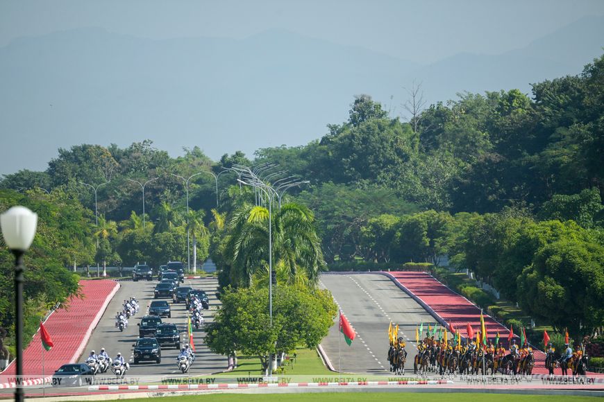 El líder belaruso fue acompañado al lugar de encuentro por una guardia de honor a caballo de 54 jinetes. Esto es algo que ocurre por primera vez en la historia de la práctica protocolaria de Myanmar, lo que subraya el estatus especial de la visita.