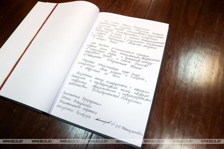 MINSK, 12 ene (BelTA). - Hoy, el 12 de enero, el vicepresidente del Consejo de la República, Vladislav Tatarinóvich, en nombre del Consejo de la República de la Asamblea Nacional, dejó una nota en el libro de condolencias en la Embajada de Venezuela en Belarús en relación con la muerte de militares y civiles como resultado de la agresión armada de Estados Unidos el 3 de enero de 2026.-0-