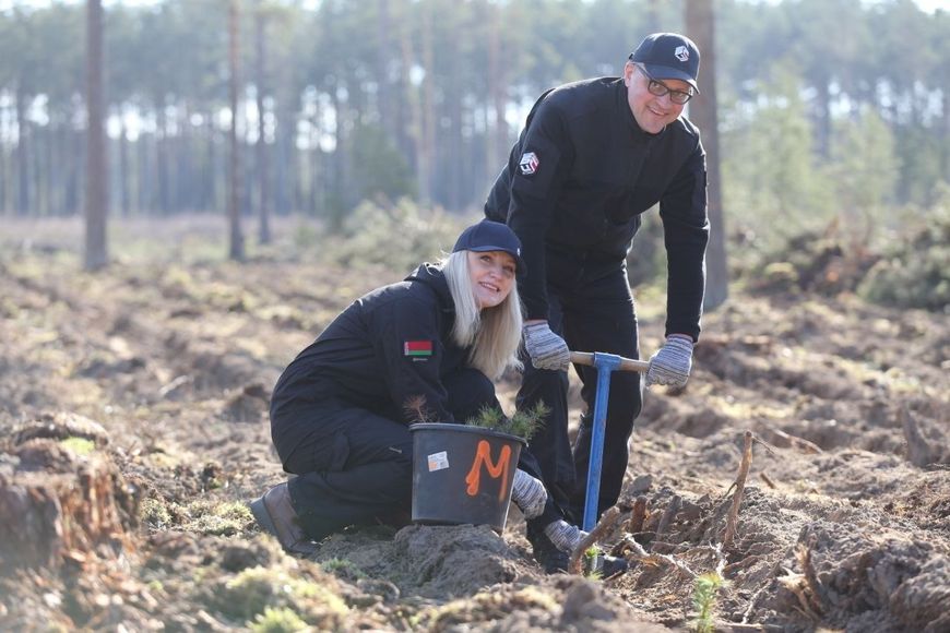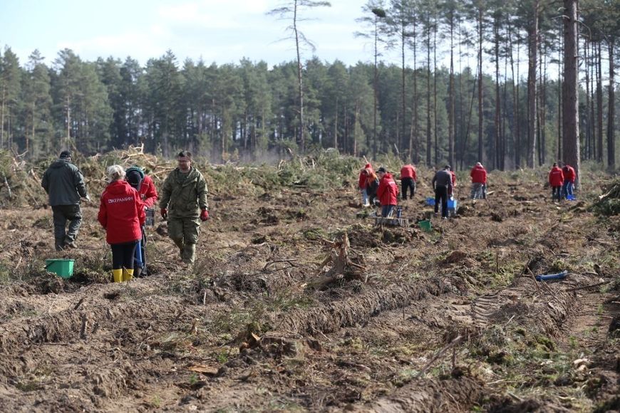 En el territorio de unas seis hectáreas, propiedad de la economía forestal de Molodechno, un equipo de 125 personas del Ministerio de Construcción y Arquitectura plantó alrededor de 26 000 plantones de pino silvestre y abedul.-0-