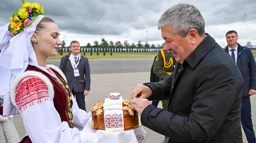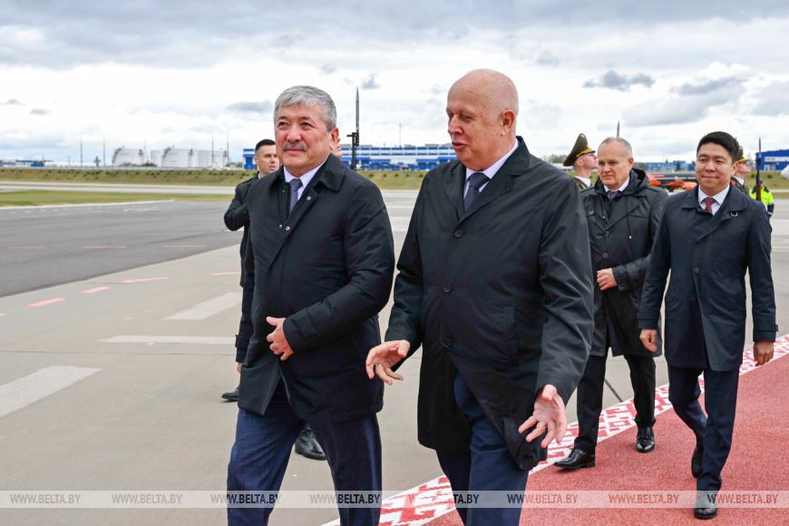 MINSK, 28 sep (BelTA). – El presidente del Gabinete de Ministros de la República Kirguisa – jefe de la Administración Presidencial, Adylbek Kasymaliev, llegó el 28 de septiembre a la República de Belarús en visita oficial. Después del encuentro en el Aeropuerto Nacional de Minsk, se realizó la colocación de ofrendas florales en el Monumento a la Victoria y en el monumento al Héroe de la Unión Soviética, Dzhumash Asanaliev. -0-