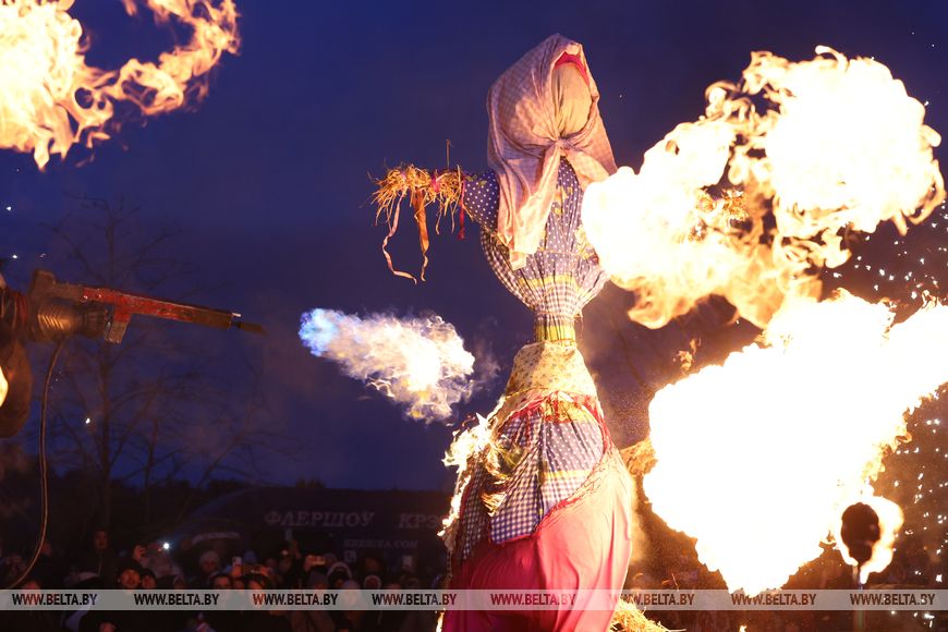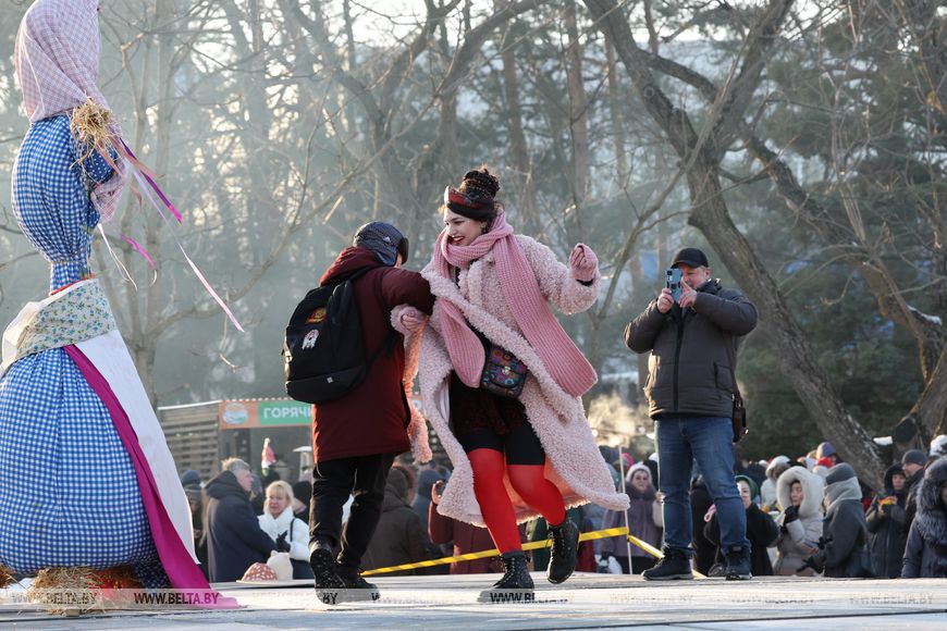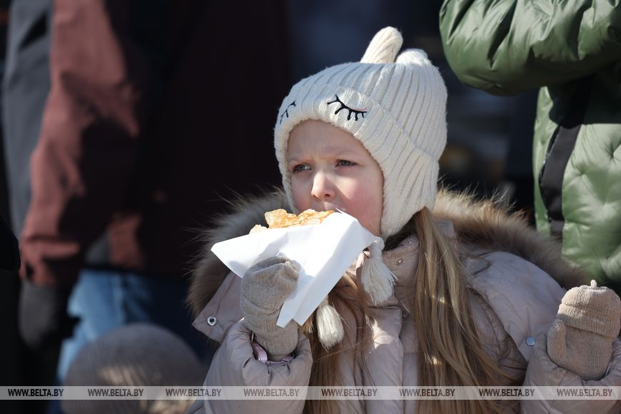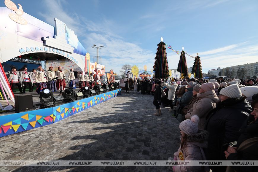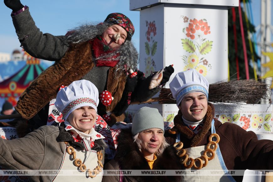 Ayer, en la capital, las festividades se prolongaron hasta las ocho de la tarde, y el ambiente festivo lo crearon artistas de tres bloques: grupos folclóricos amateurs, grupos profesionales y, junto con ellos, un bloque de música pop, que interpretaron temas populares belarusos y éxitos modernos sobre el tema de Máslenitsa.