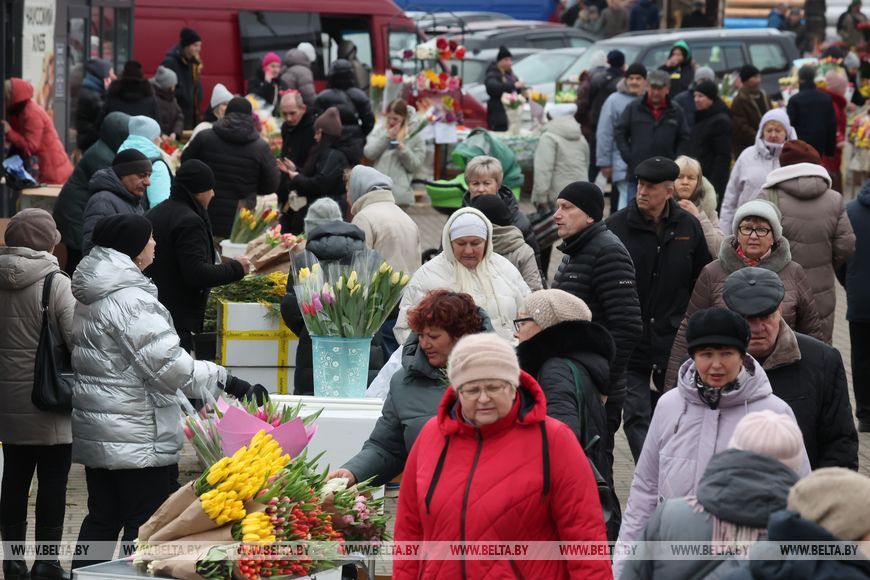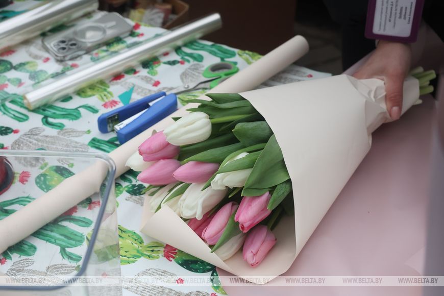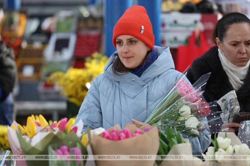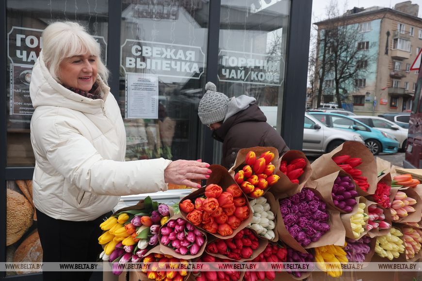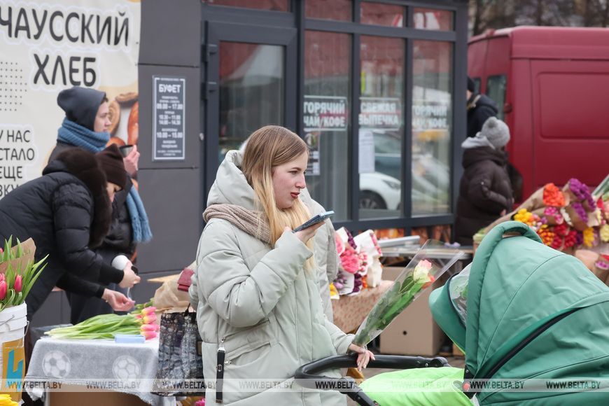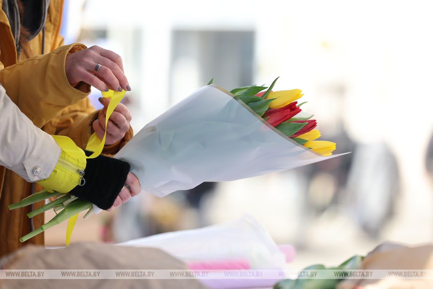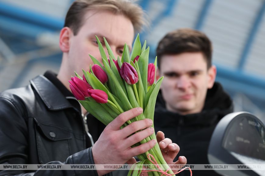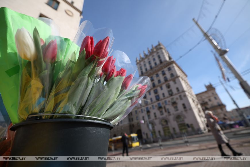 MINSK, 6 mar (BelTA). – El ambiente en las calles de Moguiliov en vísperas del 8 de Marzo es alegre, con mimosas y tulipanes por todas partes. Los hombres han comenzado a felicitar activamente a las mujeres por la fiesta de la primavera.