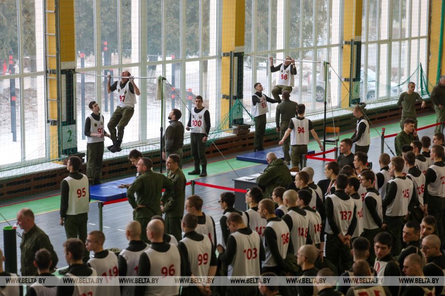 Durante el fin de semana, según el plan, se verifica la preparación física de los militares. Para los hombres, dominadas en la barra; para las mujeres, elevación del tronco.