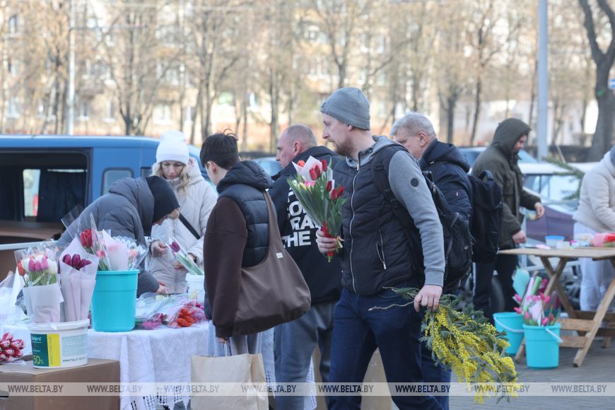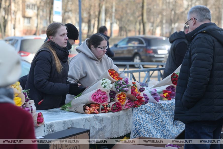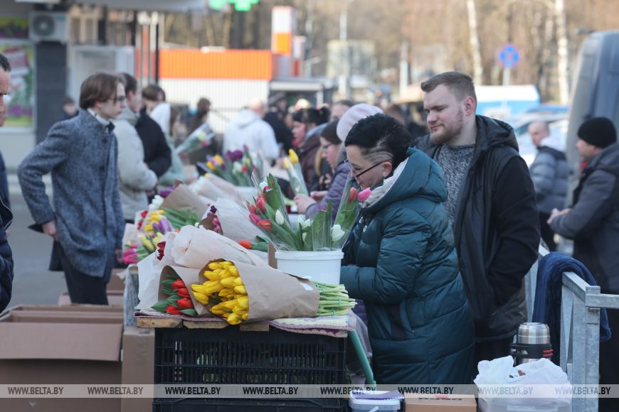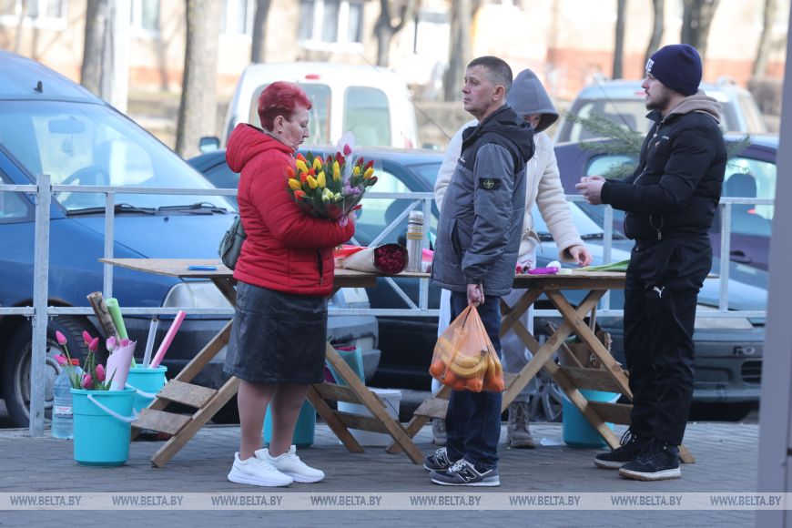 MINSK, 8 mar (BelTA). - Las ferias de flores se han desplegado en todos los distritos de Grodno. Son los tulipanes los que muchos belarusos asocian con el Día de la Mujer, y el comercio está en pleno apogeo en este día festivo.-0-