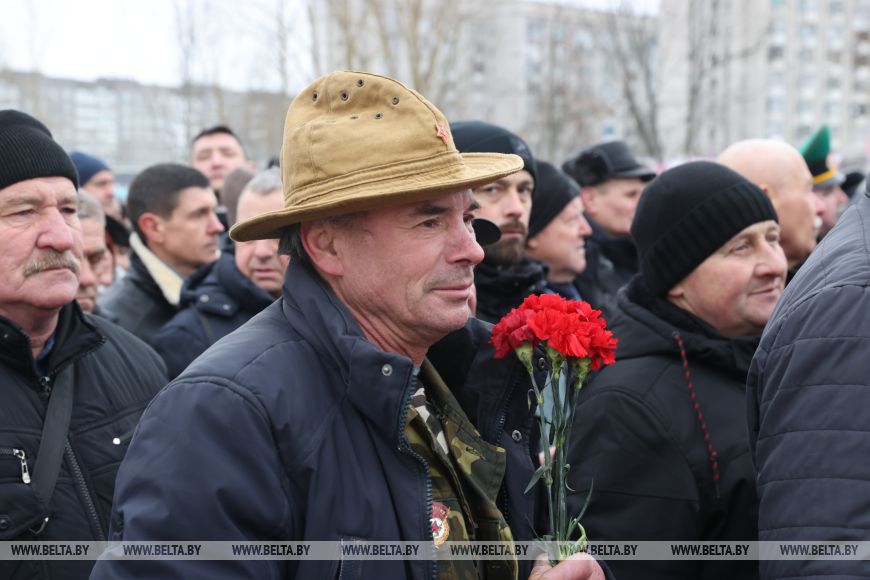 También intervino ante sus compañeros el presidente de la filial provincial de la Unión Belarusa de Veteranos de la Guerra de Afganistán, Mijaíl Zhukévich, quien a los 18 años, a principios de la década de 1980, conoció los horrores de Afganistán al alistarse en una unidad de zapadores. Resultó herido y fue condecorado con altas distinciones.